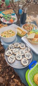 Als alle Kinder ihre befüllen Osternester gefunden hatten, wurde das Buffet eröffnet und es wurde zusammen gegessen, getrunken, geredet und gespielt. Die Osternester nahmen die Kinder mit nach Hause. Gemeinsame Feste sind immer ein Highlight im Waldkindergarten, die Kinder freuen sich, dass ihre Familien mit dabei sind, es findet etwas Besonderes statt und es ist Zeit für Austausch und Kennenlernen.